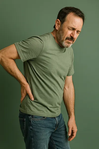 Causa dor aguda na região lombar que irradia pela perna, gerando formigamento ou fraqueza ao caminhar. Movimentos simples, como sentar-se ou girar o tronco, frequentemente desencadeiam intenso desconforto.